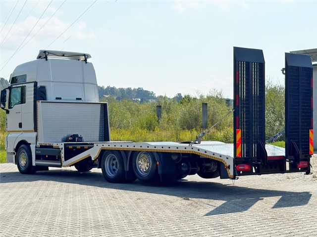 MAN TGX 26.510 / 6x2 Laweta 8,20 m SPROWADZONY / BEZWYPADKOWY STAN BARDZO DOBRY! • ROK PRODUKCJI: 2020 • PRZEBIEG: 496 000 km WYPOSAŻENIE: • ABS • ASR • C. ZAMEK • EL. SZYBY • EL. LUSTERKA • KLIMATYZACJA • WSP. KIEROWNICY • BLOKADA MOSTU ŁADOWNOŚĆ: 17 000 kg DMC: 26 000 kg ROZSTAW OSI: 485/138 cm ROZMIAR OPON: 315/80R22,5 ZAWIESZENIE: PRZÓD: RESOROWE TYŁ: PNEUMATYCZNE Cena: 249 000 zł Netto TEL: 504 275 320 lub 695 322 108 Nasz adres: ul. Tarnowska 185, 33-300 Nowy Sącz, Polska Pomagamy w załatwieniu leasingu lub kredytu na wybrany przez Klienta samochód. Współpracujemy ze wszystkimi Bankami oraz firmami świadczącymi usługi leasingowe i kredytowe. W sprawach związanych z finansowaniem zakupu, na wszelkie pytania chętnie odpowie Pan Jan Płażek tel. +48 533 500 901. Jeśli są Państwo zainteresowani leasingiem w Europejskim Funduszu Leasingowym (EFL), zapraszamy do kontaktu z Panem Michałem Miką, tel. 609 523 855. Tablice zjazdowe oraz ubezpieczenie OC na drogę powrotną dostępne od ręki !